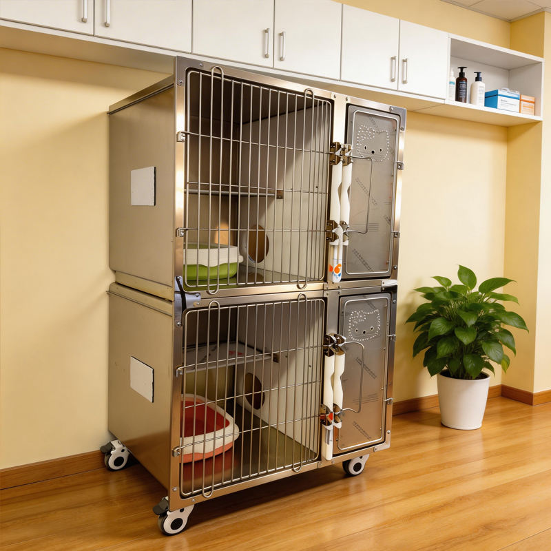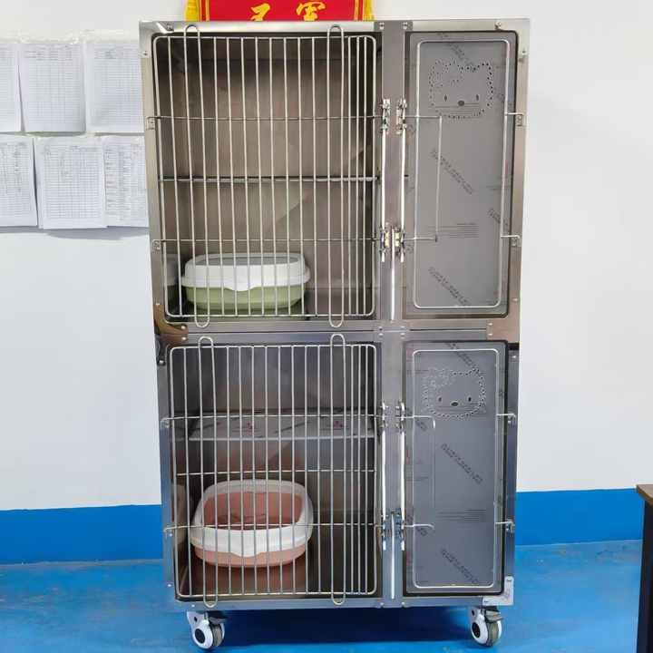 Jaula de Acero Inoxidable de Doble Capa de Alta Gama para Gatos, Estilo Simple, con Bandeja de Plástico, Recinto para Mascotas, para Uso en Clínicas Veterinarias