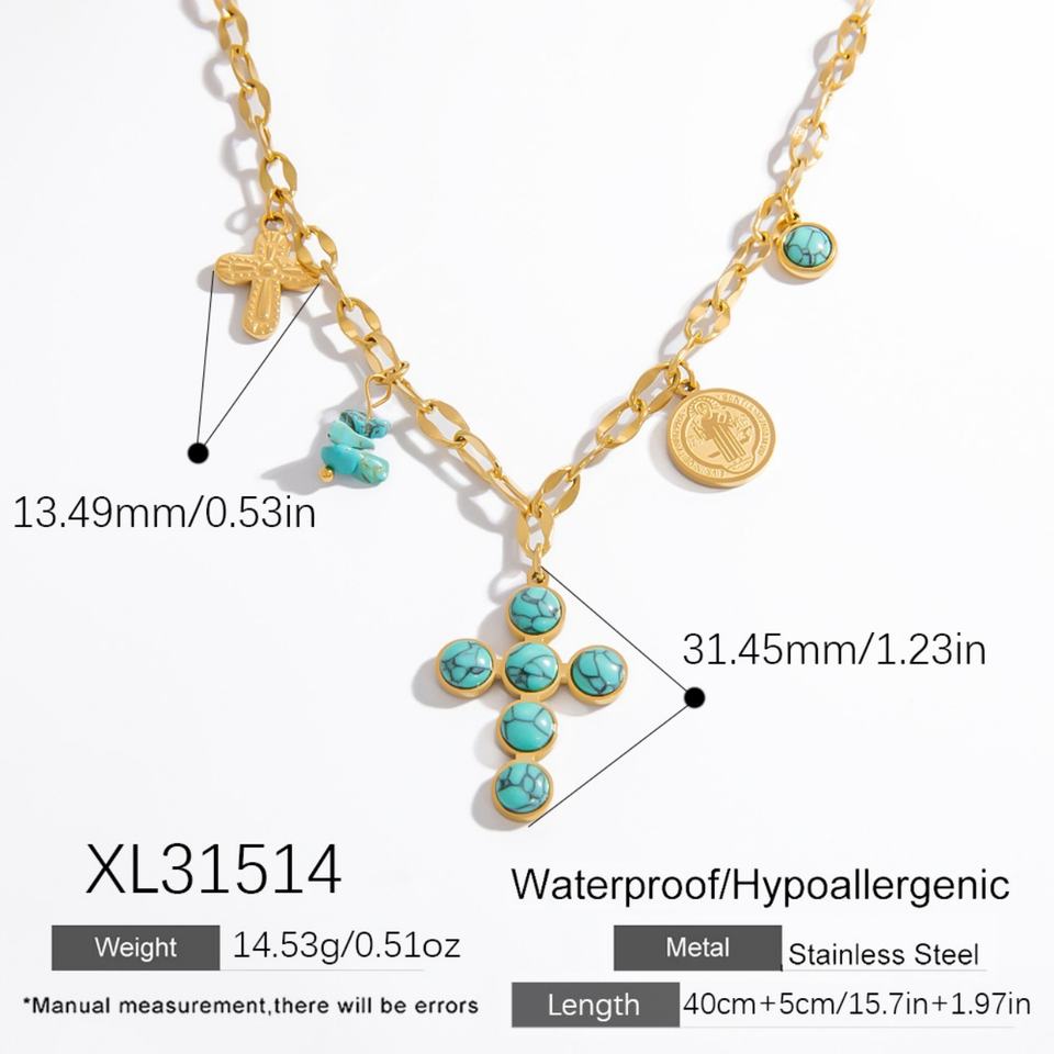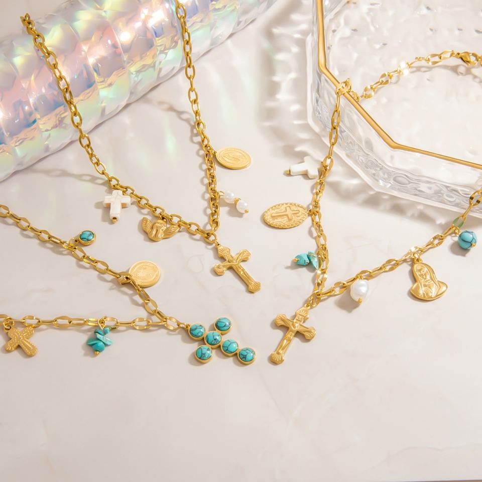 Collar de Cruz de Acero Inoxidable de Alta Gama con Corte Princesa y Oro de 18K, Cadena de Eslabones con Perlas, Moderno, para Fiestas de Mujeres