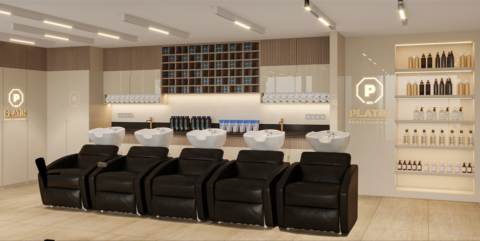 Estilo de gama alta Decoración de La Tienda del Salón de los hombres Spa Salon Barber Station Espejo LED largo con escritorio de recepción