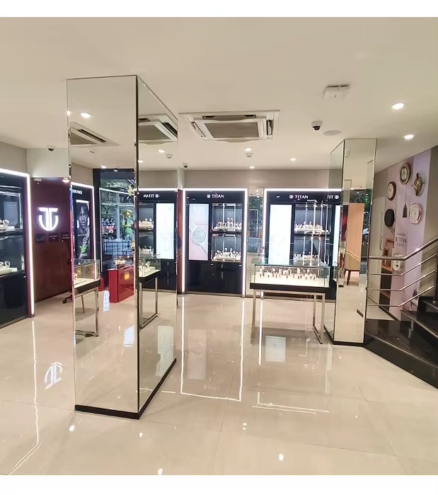 Diseño Interior de Alta Gama para Salas de Exhibición de Relojes, Decoración Premium para Tiendas de Relojes, Unidades de Exhibición Personalizadas, Mostradores de Lujo, Estantes de Vidrio