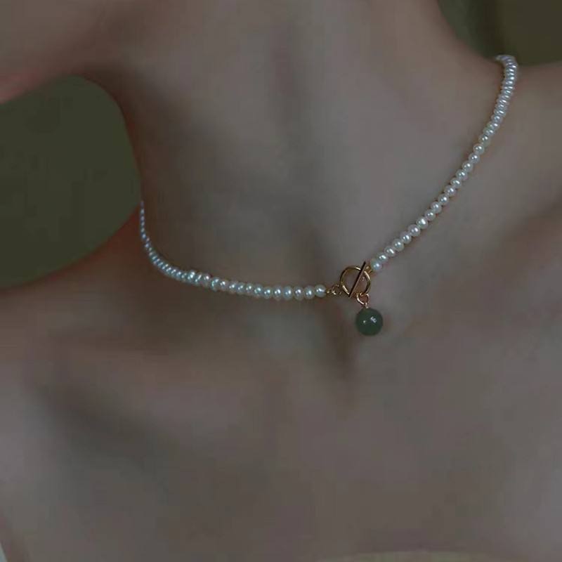 Collar de Perlas de Agua Dulce de Alta Gama para Mujer, Perla Bebé, Jade, Hebilla OT, Diseño Minimalista, Cadena para Clavícula, Elegante y Exclusivo