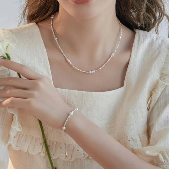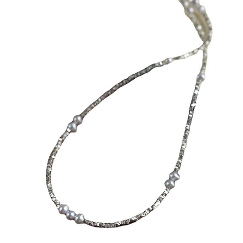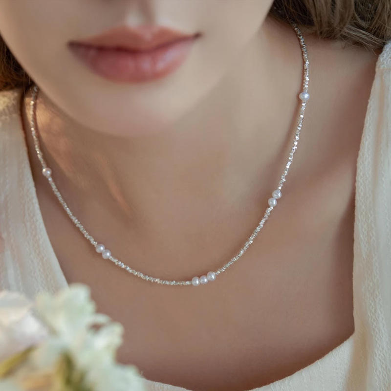 Collar de Perlas de Agua Dulce de Alta Gama para Mujer, Diseño de Cielo Estrellado con Plata Rota, Estilo de Lujo Ligero, Cadena para Clavícula