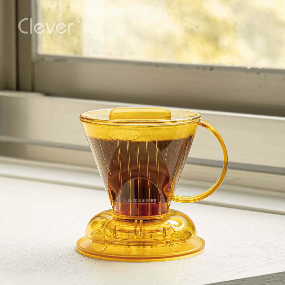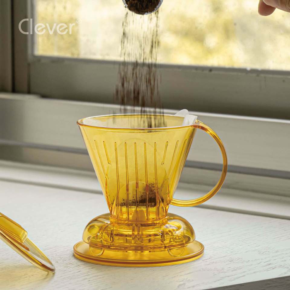 Filtro de Café Reutilizable Compacto de Plástico Translúcido Amarillo Trapezoidal de Alta Extracción para Oficina Moderna
