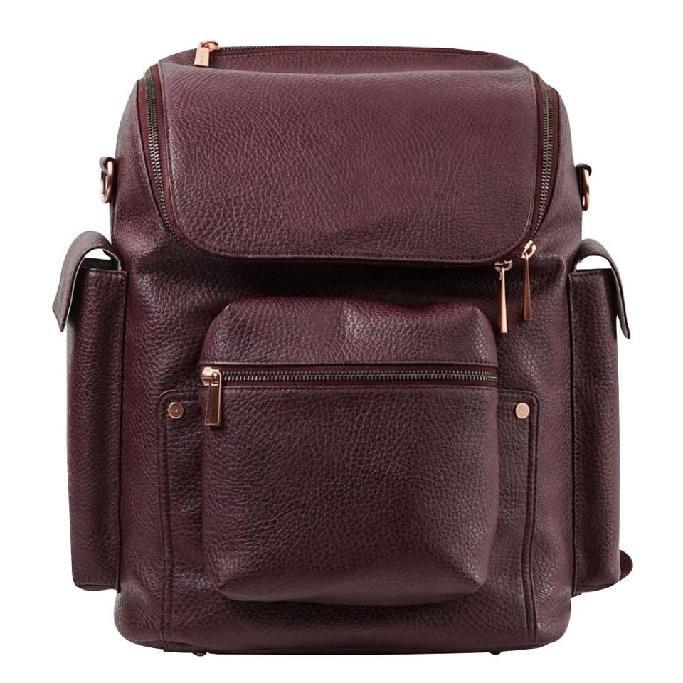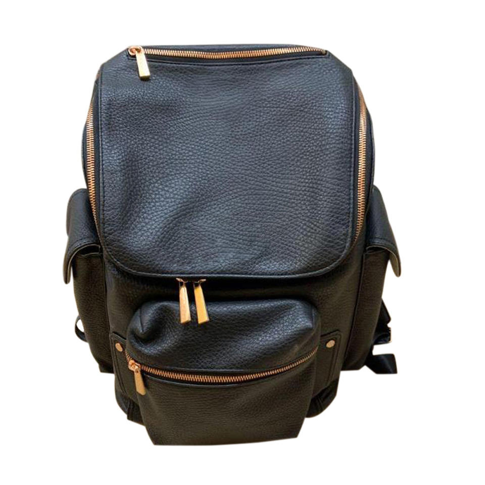 Mochila de pañales multifunción de cuero PU genuino de un solo paquete personalizado de alta moda bolsa de viaje plegable para mamá y bebé