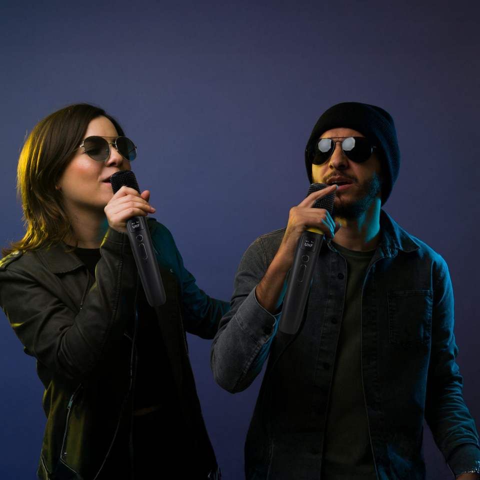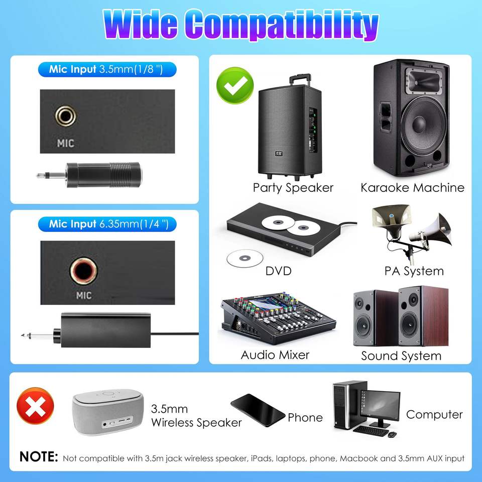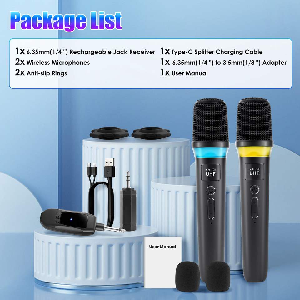 Micrófono Inalámbrico Cardioide de Alta Fidelidad de 2.4GHz con Alcance de 164 Pies, Luces LED y Cancelación de Ruido para Bodas, Clubes, Gimnasios - Plug and Play