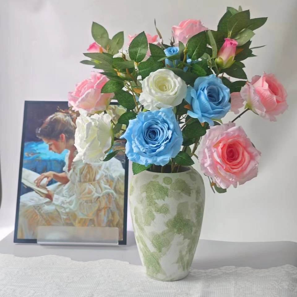 Rosas Artificiales de Alta Fidelidad con Tallos Largos, Flores de Seda Blancas, Rosas y Azules para Decoración de Bodas y Hogar, Tacto Natural, 121 mm