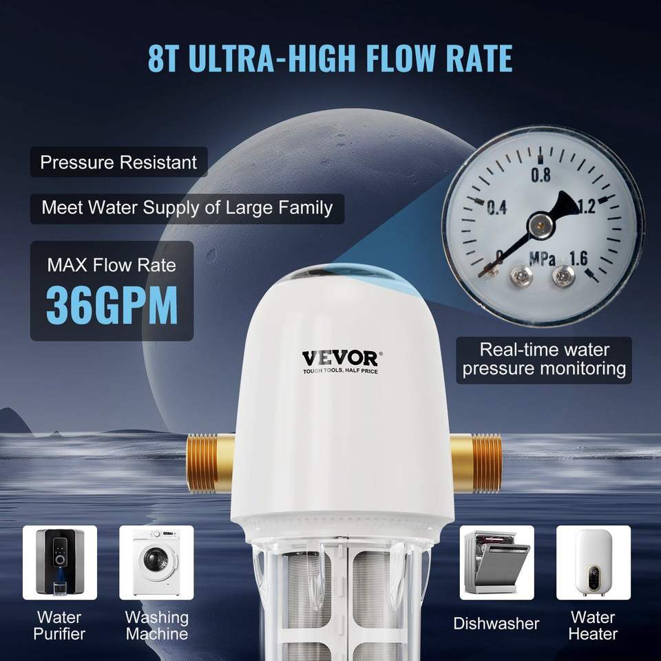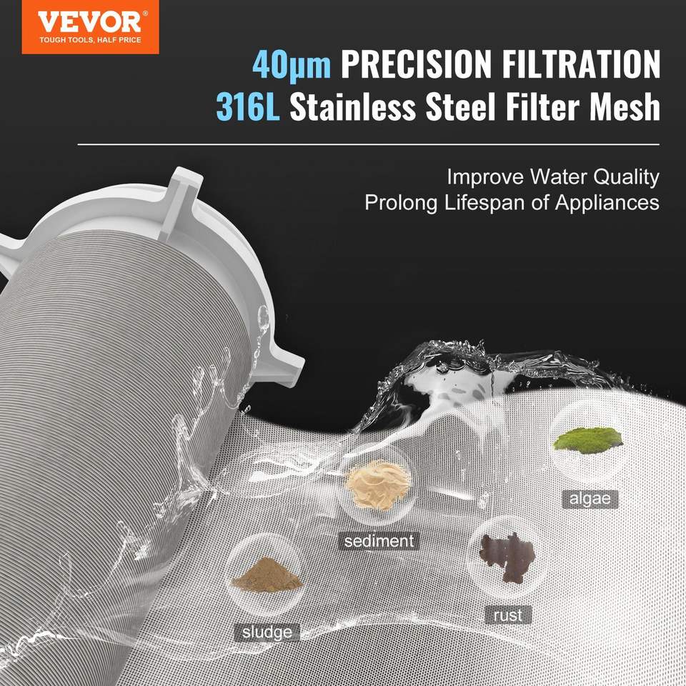 Filtro de Sedimentos de Alto Flujo de 40 Micras para Toda la Casa, Filtro Giratorio para Agua de Pozo, 1'' MNPT + 3/4'' FNPT, 8 T/H para Toda la Casa