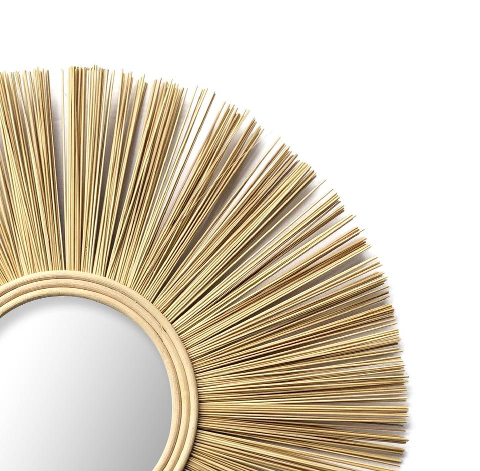 Espejo de baño redondo pequeño de ratán de bambú bohemio ecológico de alta calidad, decoración duradera tejida a mano, muebles de sala de estar