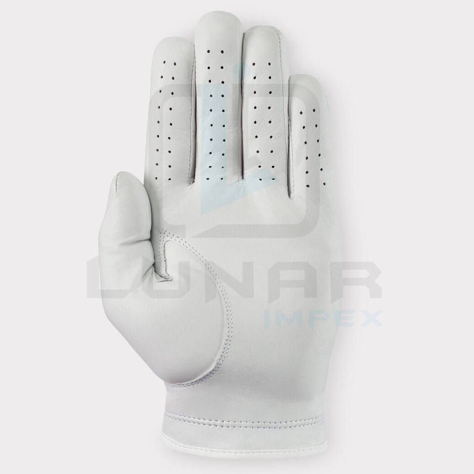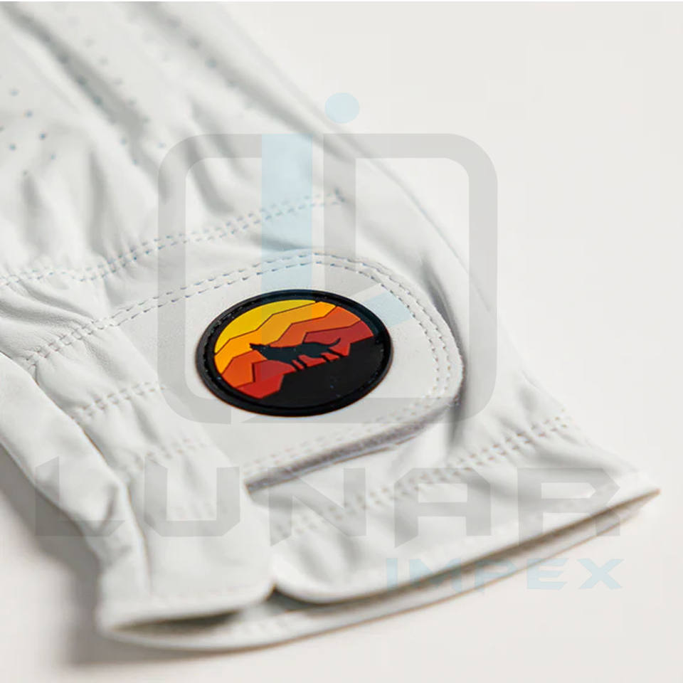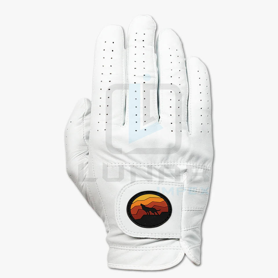 Pegatina sublimada 3D Yote de alto grado en guantes de golf de cuero Cabretta con correa en guantes de Palma transpirables de cuero blanco y duradero