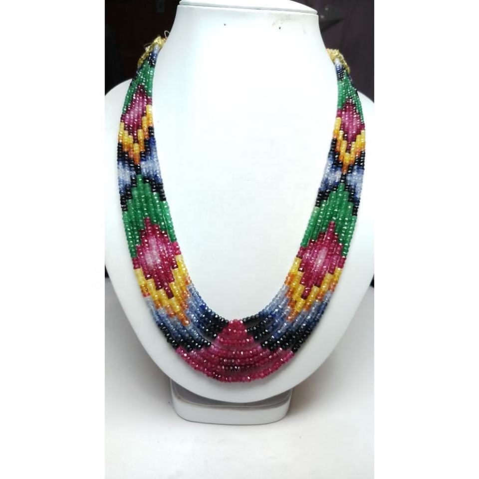 Collar de Cuentas Redondas Facetadas de Zafiro Multicolor de Alta Calidad, 7 Capas, 3mm, 4.5mm, 4mm, Piedras Preciosas Sueltas, Verificación de Terceros
