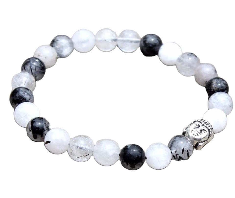 Cuentas de piedras preciosas de Cuarzo rutilado gris redondo de 8 mm de alto grado pulsera de moda Bohemia para fiesta o regalo para budismo