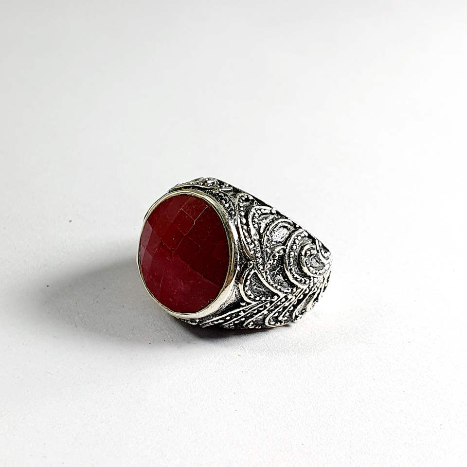 Anillo de Rubí Romántico Boho de Diseño de Alta Gama (10.3 Gramos) con Engaste de Piedra Natural en Oro Puro para Uso Diario para Hombres