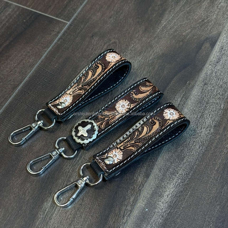 Product name:Hand Tooled Metal Concho Key Chain Leather