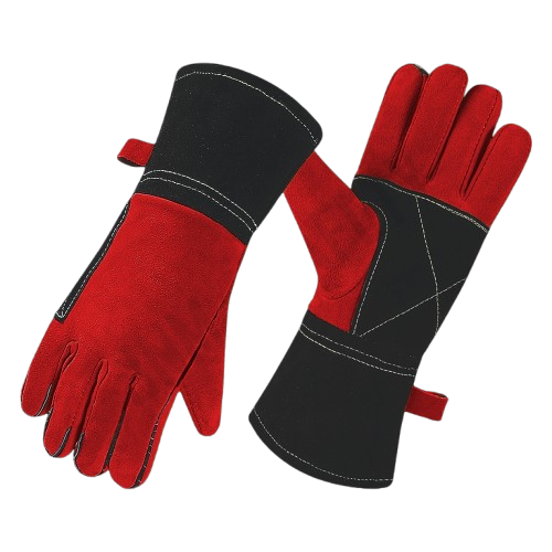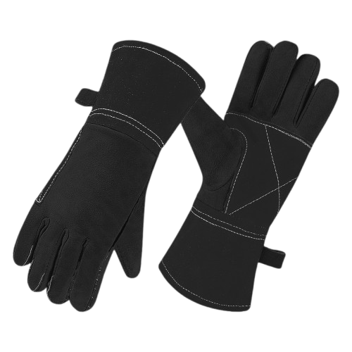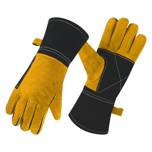 Guantes de Cuero Vacuno Resistentes al Calor, Reforzados, Protección Contra Chispas, para Bomberos, Soldadura, Guantes de Trabajo Duraderos