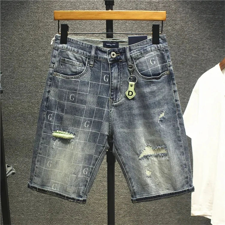 Shorts Vaqueros Casuales de Alta Calidad para Hombre, Corte Clásico, Desgastados, Estilo Veraniego, Jeans Cortos Rotos de Moda Masculina