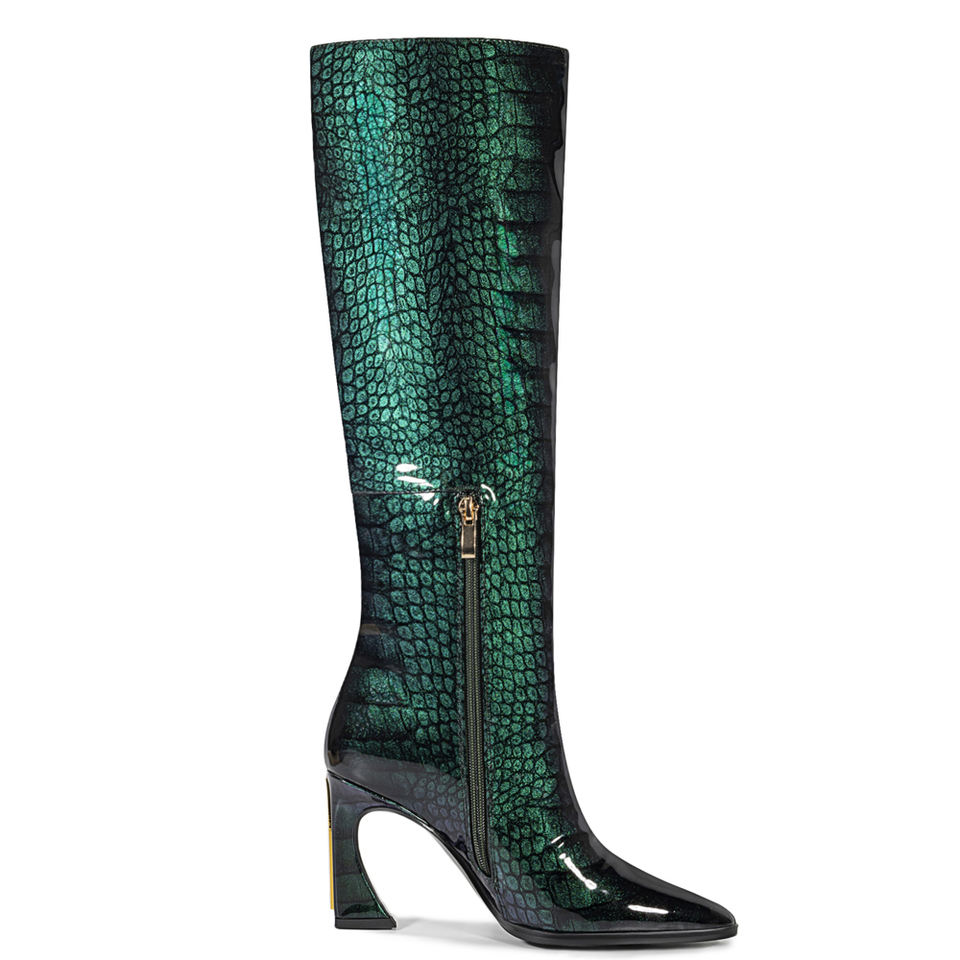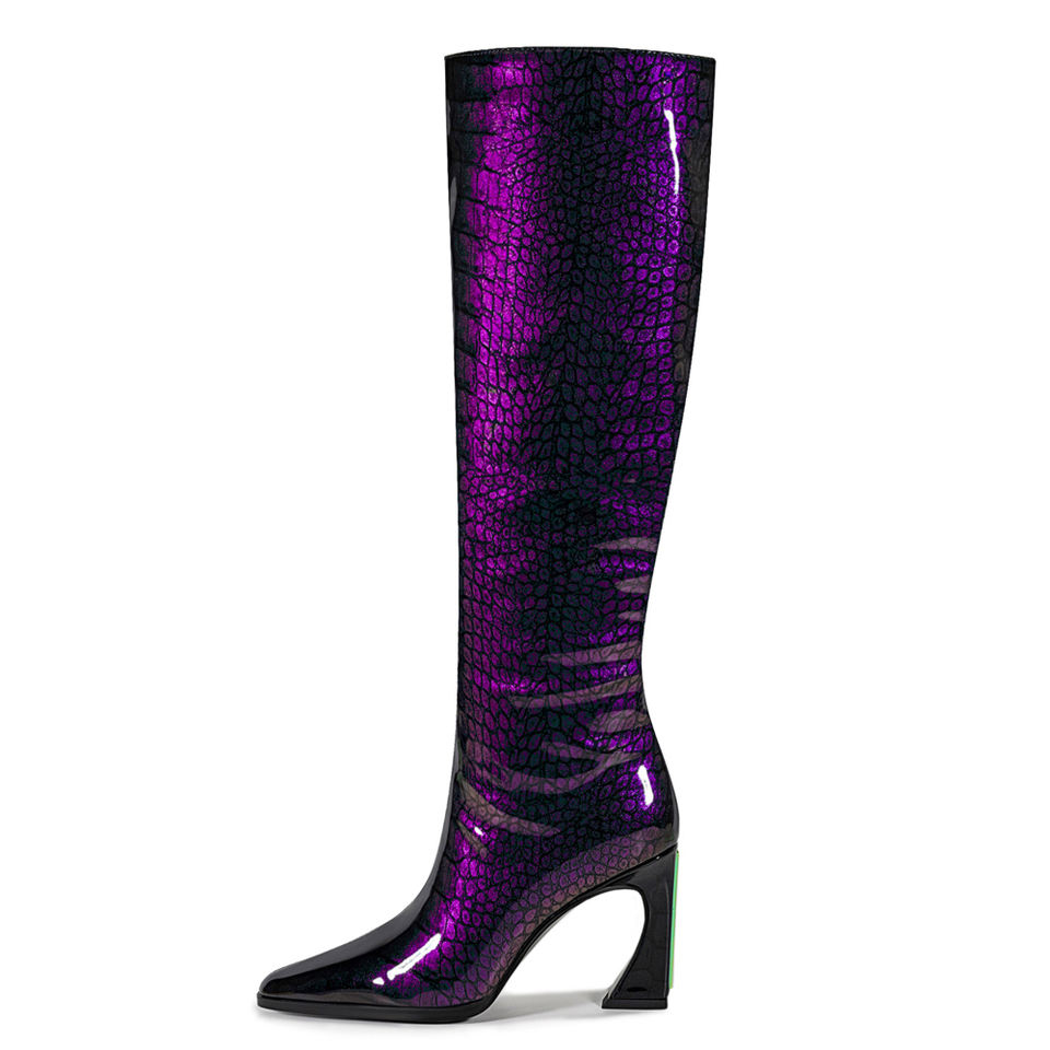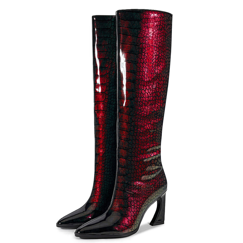Botas Altas de Tacón con Punta Fina y Cremallera Lateral para Mujer, Talla Grande 45, con Empeine de Charol Degradado Brillante