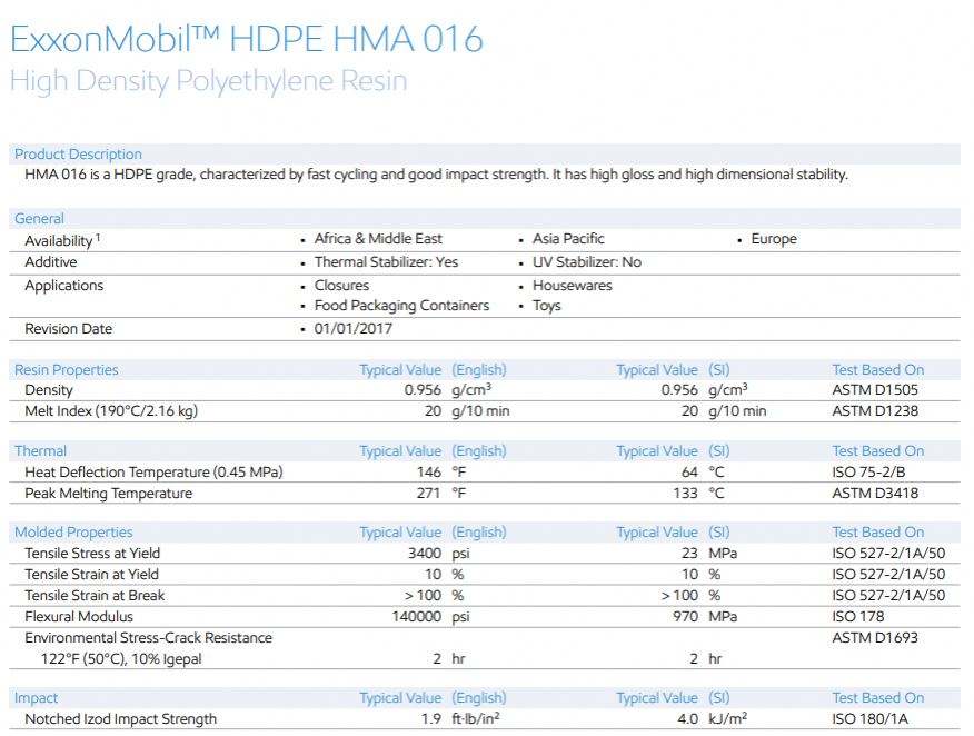 Grado de moldeo por inyección, Grado de contacto con alimentosGrado