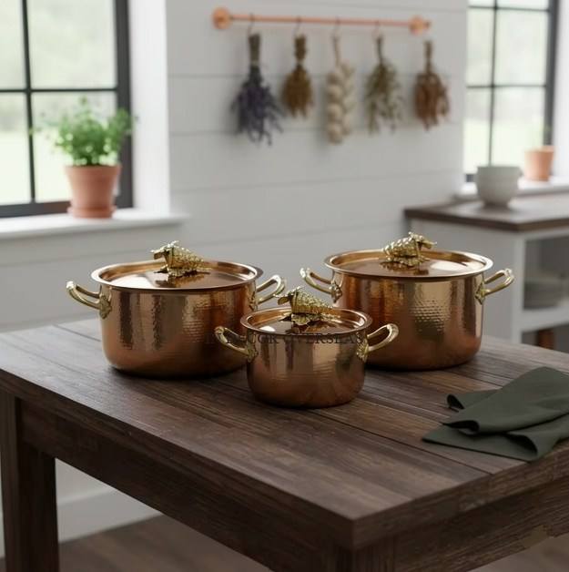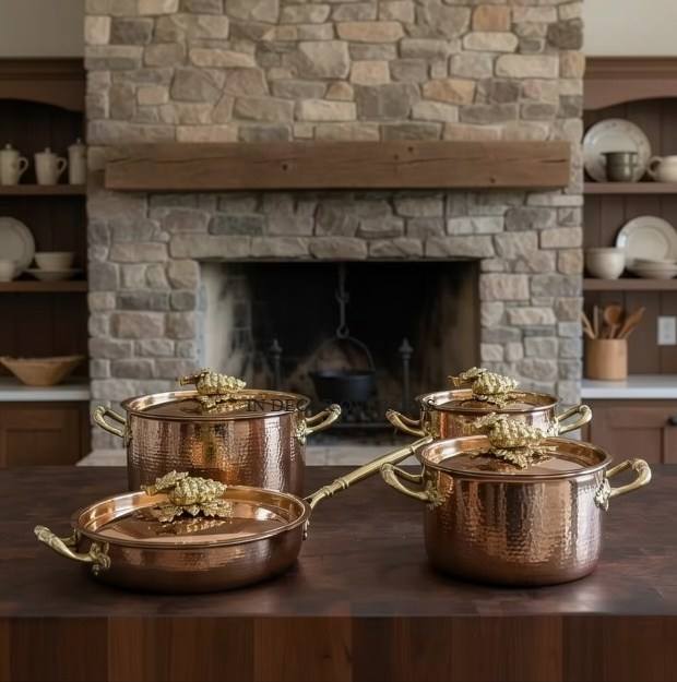 Cacerolas Ruffoni de Acero Inoxidable de Alta Calidad con Acabado Antiguo de Cobre, Hechas a Mano, con Tapa de Calabaza, Muy Demandadas