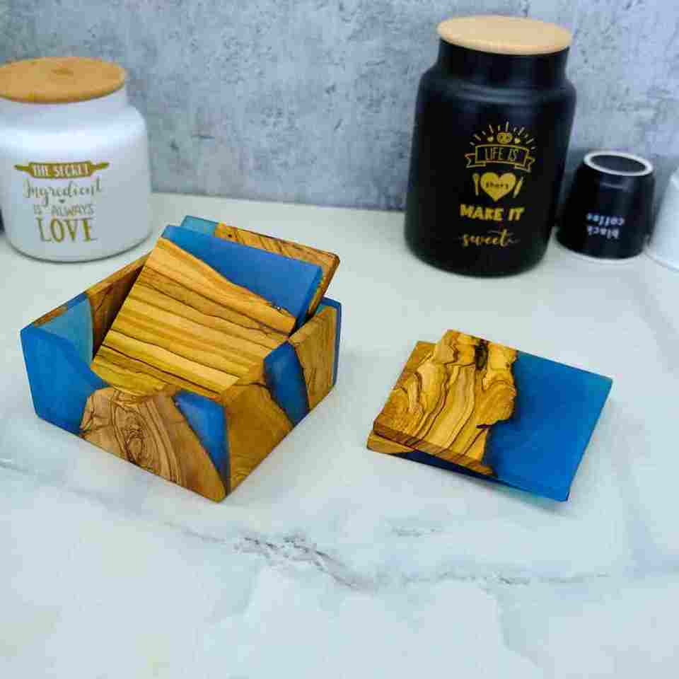 Posavasos de alta demanda con diseño y hechos a mano, forma personalizada, artesanía de resina de madera de nogal EN LA India con alta calidad
