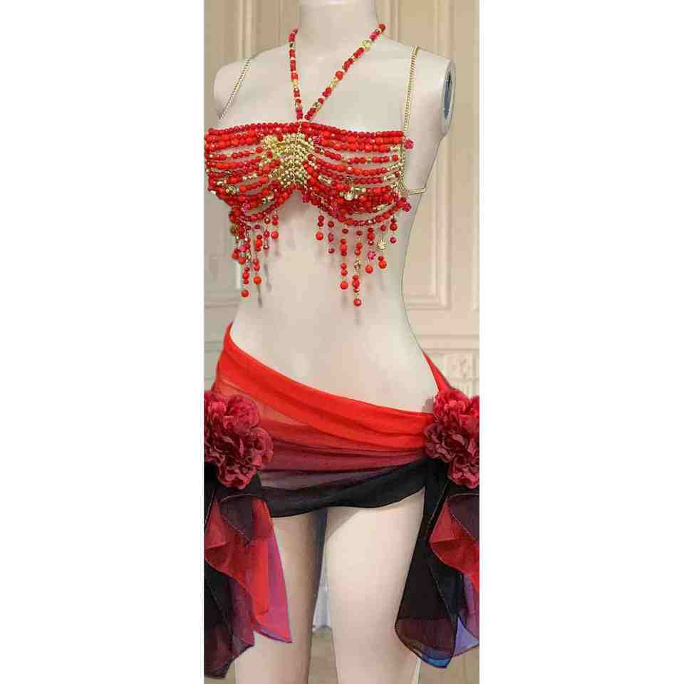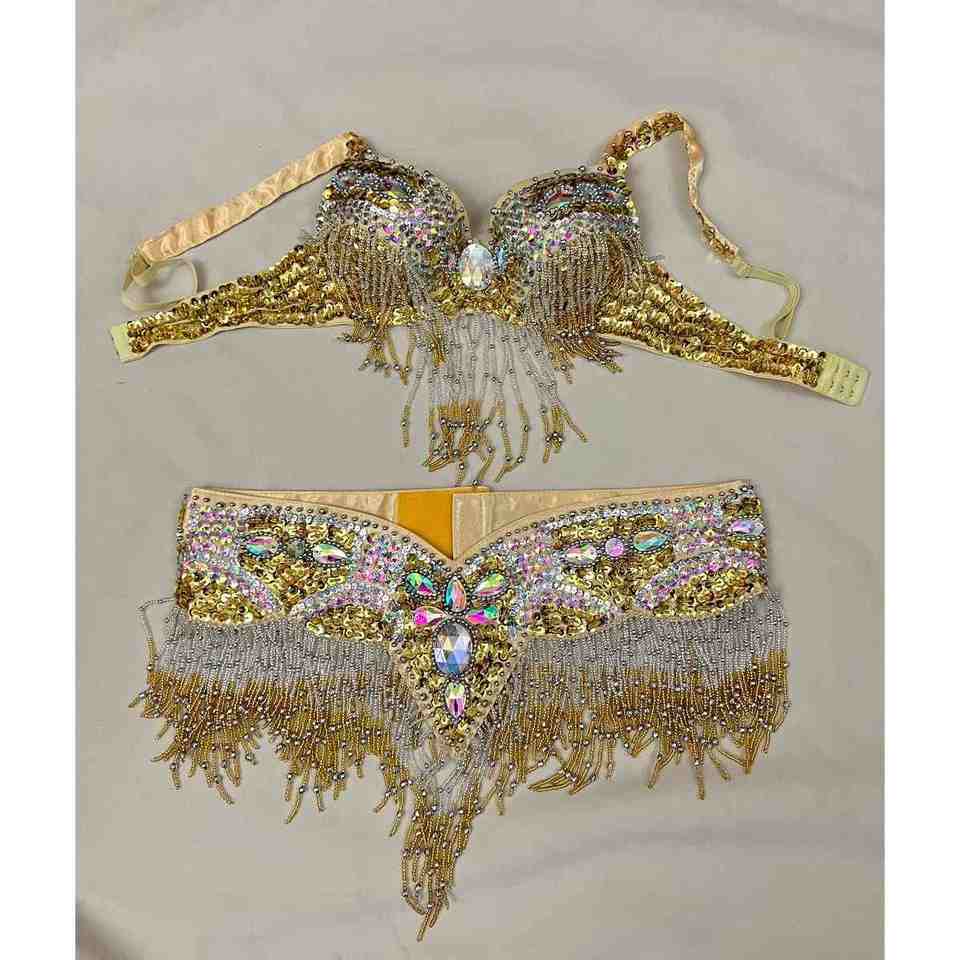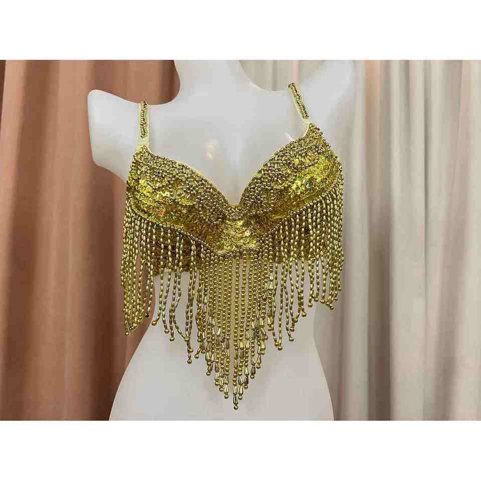 Traje de danza del vientre de talla grande con cuentas de sujetador de niña de alta demanda para mujer con alta calidad