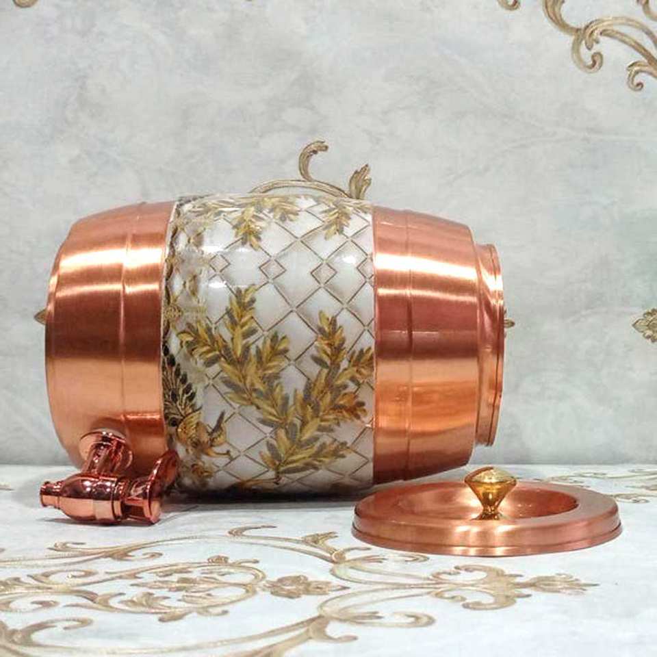 Dispensador de agua de cobre puro de alta demanda Pequeño fabricante de artesanías Exportador India Calidad
