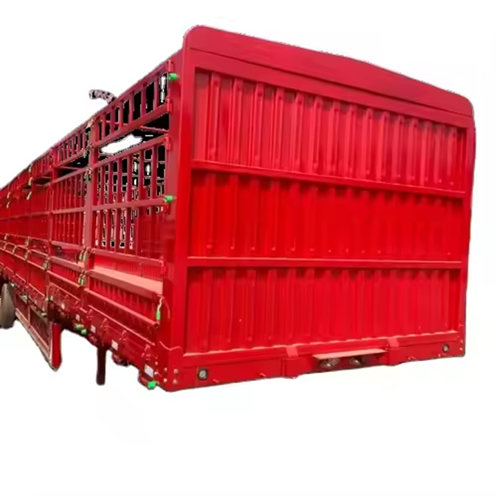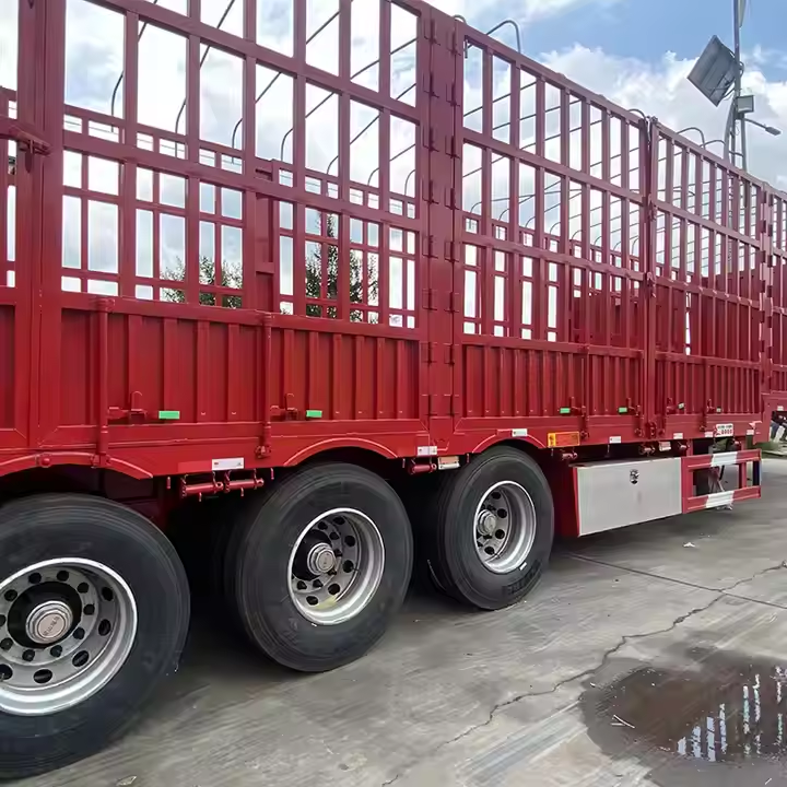 Remolque de 3 Ejes de Alta Capacidad de Carga con Barandas Altas para Ganado, Animales, 60 Toneladas, Semirremolque de Carga con Barandas para la Venta