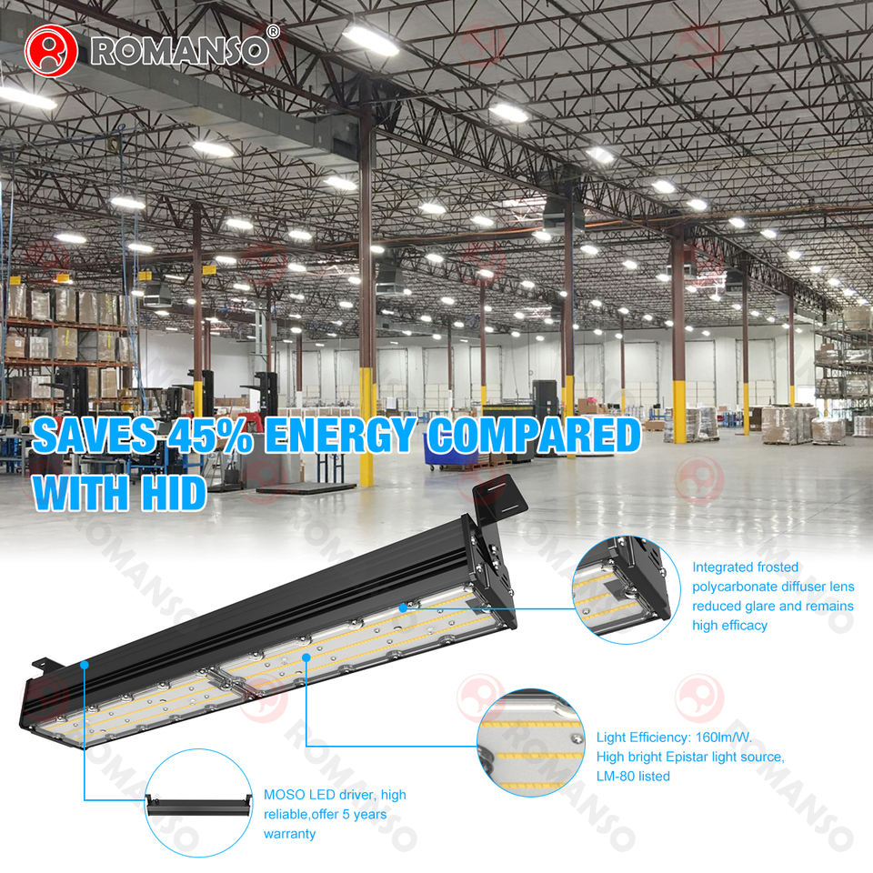 Lámpara Lineal de Alta Potencia para Techos Altos, 150W LED, para Talleres y Almacenes