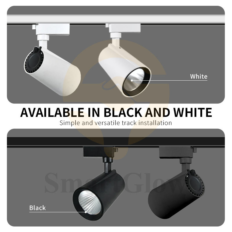 Lámpara de foco LED de iluminación de pista moderna de alto lumen 12W 20W 30W 40W Luz de pista comercial foco COB de aluminio luces de pista LED