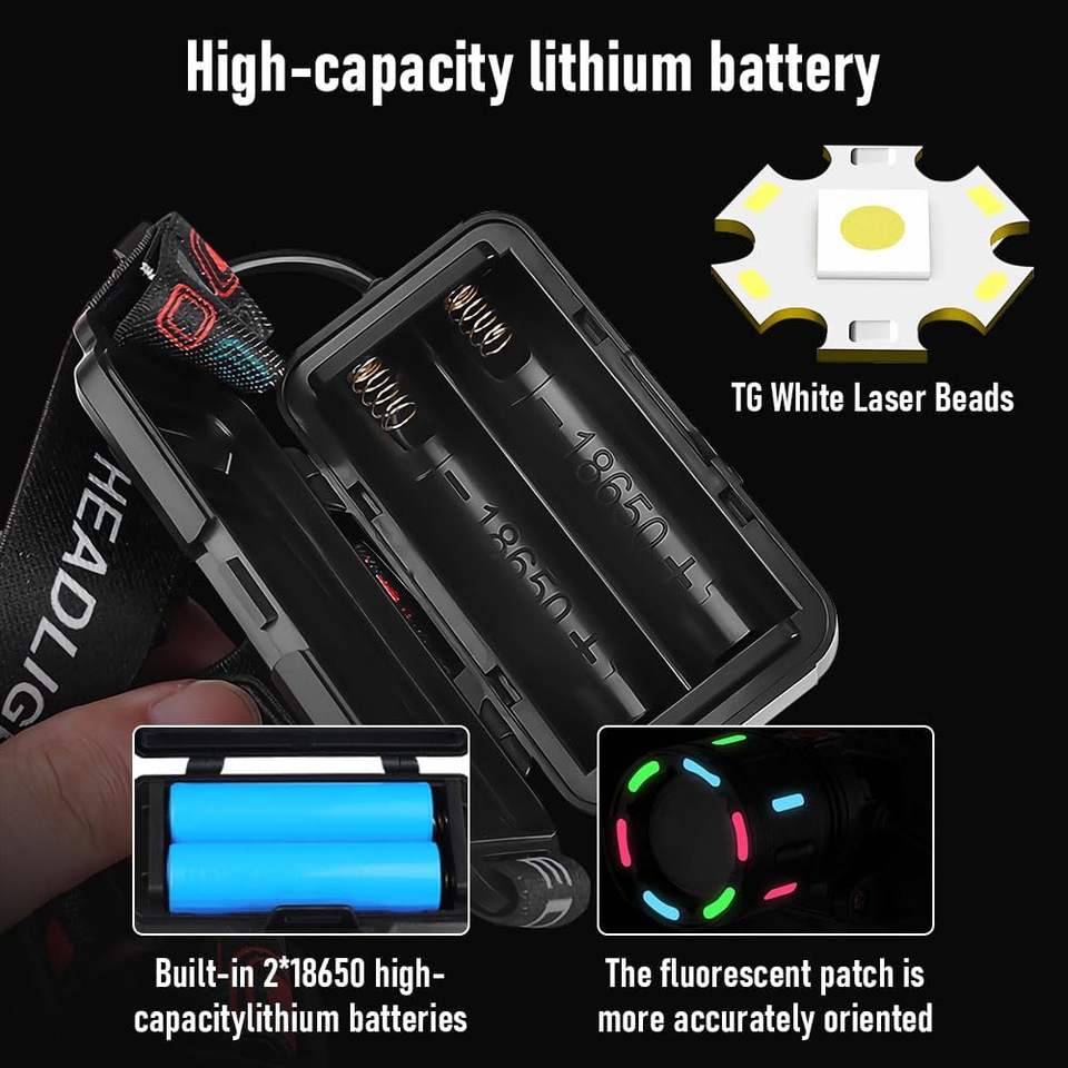 Linterna Frontal LED Recargable de Alta Luminosidad con Sensor de Movimiento, Linterna Frontal Impermeable IPX5 para Camping, Correr y Escalar