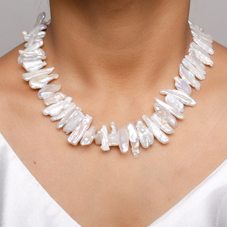 Collar de Perlas Sueltas de Agua Dulce Naturales de Alto Brillo, Collar de Perlas Genuinas con Forma Elegante, Joyería de Perlas al por Mayor