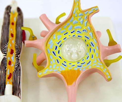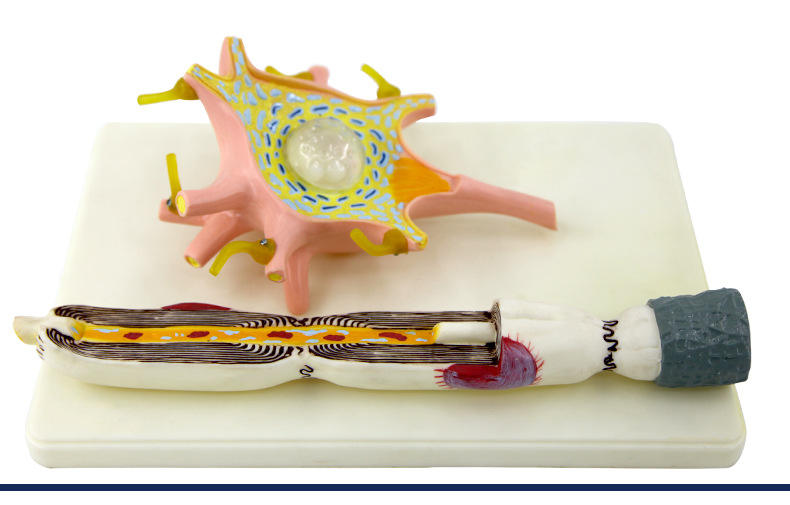Componentes detallados de microscopía electrónica de modelo de célula neuronal de gran aumento 2500x que incluyen equipo educativo Axon