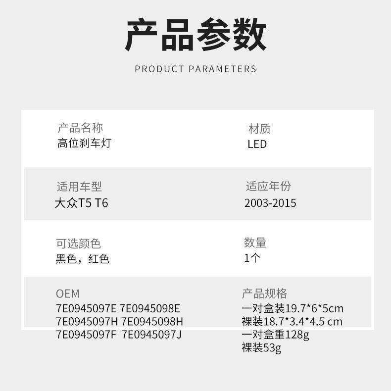 Luz de freno LED roja de montaje alto, par, para Volkswagen T5 T6 Multivan 7E0945097 7E0945098