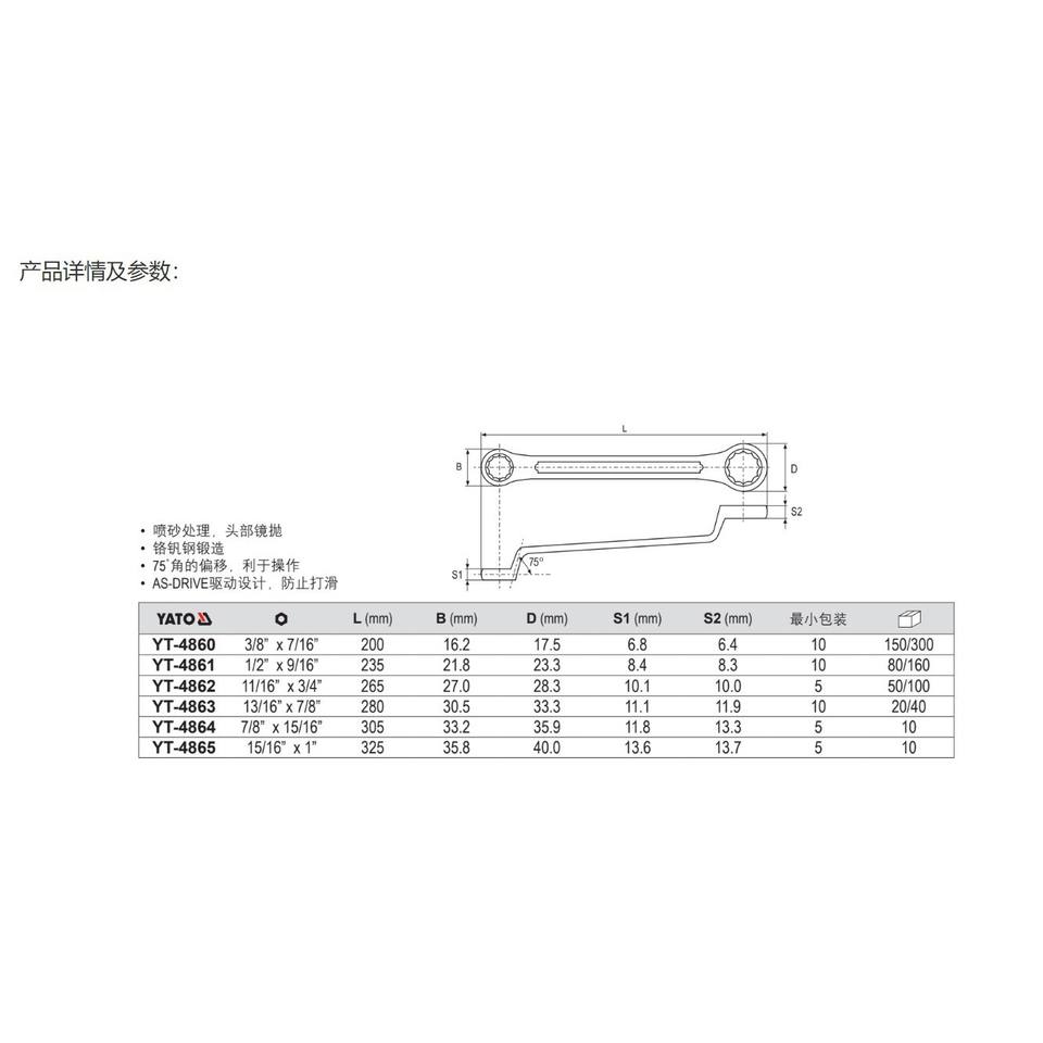 Llave de boca de doble extremo de cuello alto, estándar imperial, de acero al cromo vanadio, manual, industrial, con cabeza de flor de ciruelo
