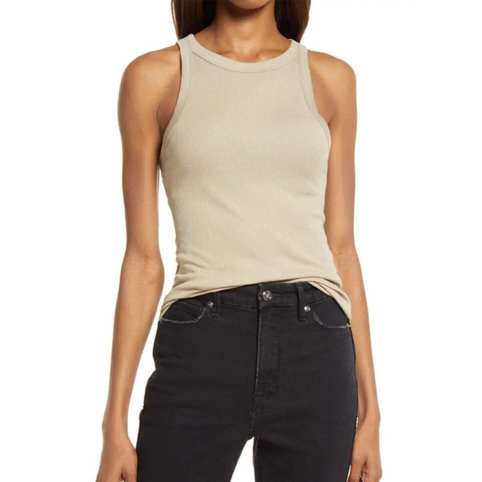 Top Corto de Cuello Alto sin Mangas, Tejido Acanalado, para Mujer, Moda de Verano, Fabricante Personalizado