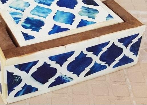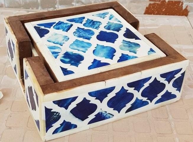 Posavasos elegantes con incrustaciones de hueso hechas a mano artísticas de alta demanda, juego de vajilla perfecto para servir té o café elegante, nuez