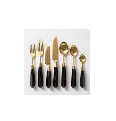 Cuchara de Latón de Alta Demanda con Mango Acrílico, Juego de Cubiertos para Mesa de Hotel, Cuchara de Alta Calidad con Mango de Resina Color Dorado
