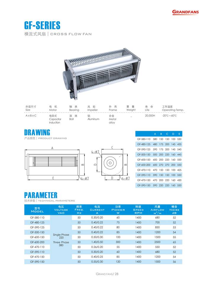 Ventilador de Flujo Cruzado de Alto Rendimiento de 60x240 mm con Motor de Doble Flujo Tangencial AC/DC de 220 Voltios para Chimenea
