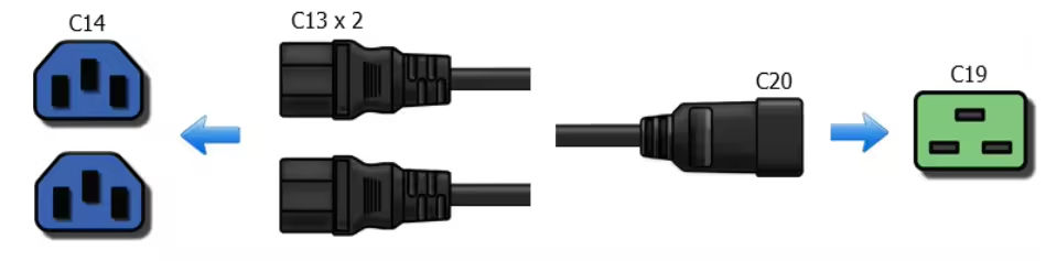Cable divisor en Y IEC 320 C20 macho a 2 x C13 hembra