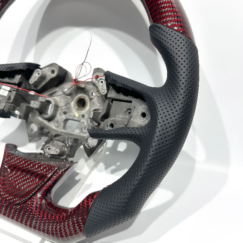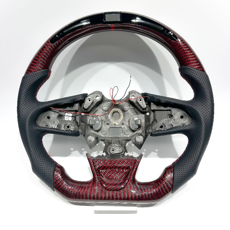 Volante Deportivo LED de Fibra de Carbono Rojo Intenso de Alto Rendimiento con Cuero Perforado para Renault Megane RS/3/4