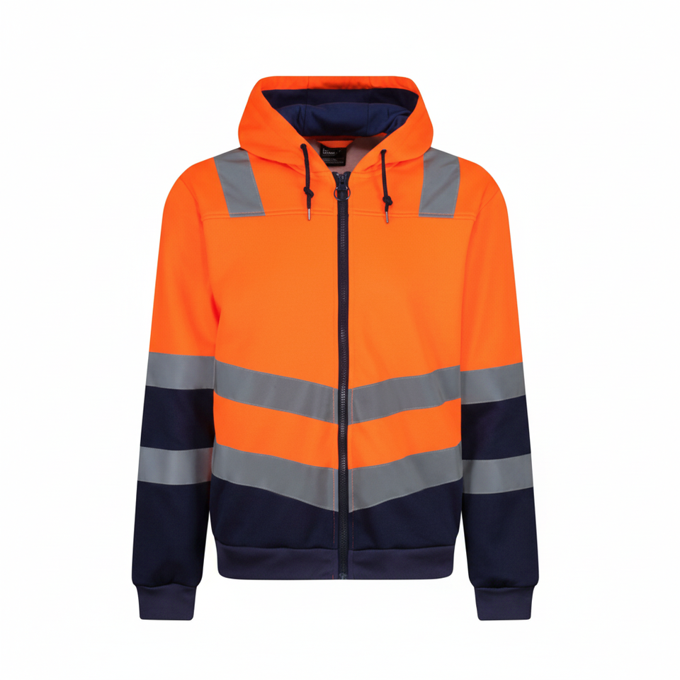 Chaqueta de trabajo con capucha polar de alto rendimiento Costuras reforzadas, bolsillos con cremallera y ajuste ajustable Hecho en Pakistán.