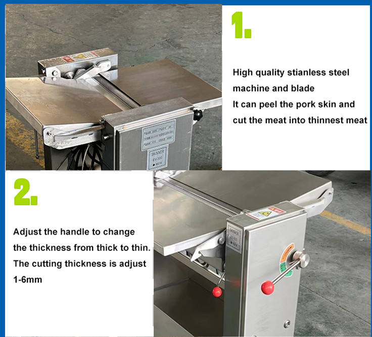 Rebanadora de carne fresca de alto rendimiento, máquina peladora de piel de cerdo, carne de cerdo, rebanadora de carne
