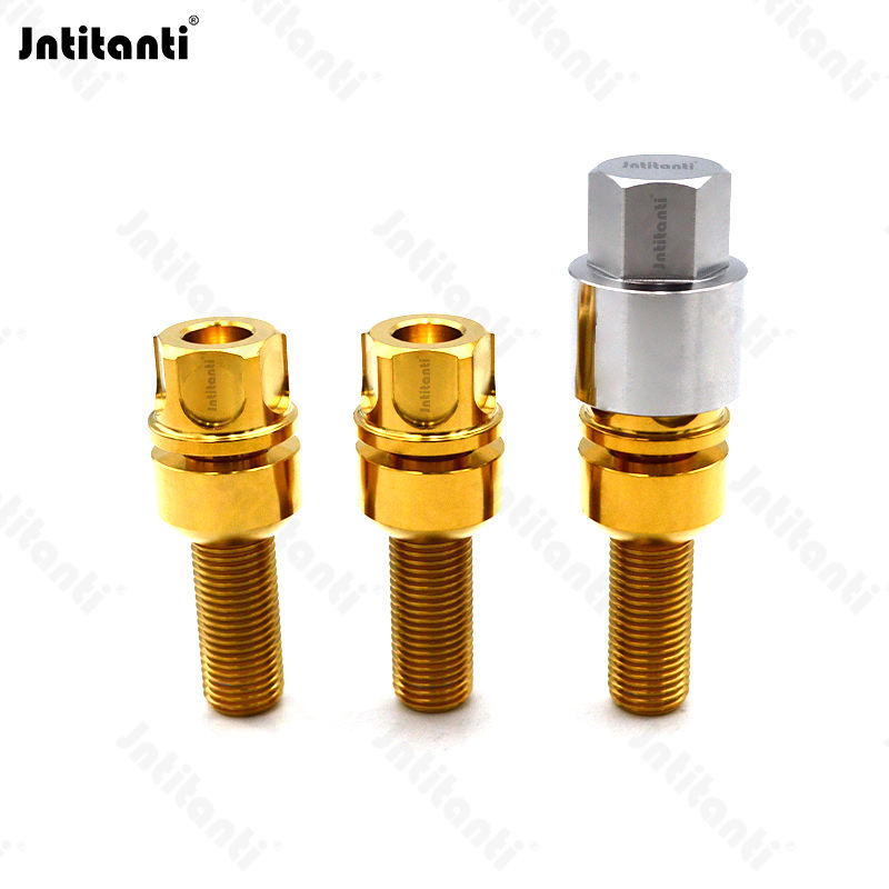 Perno de rueda de titanio Gr.5 de asiento esférico flotante antirrobo de Color dorado de alto rendimiento para Porsche con llave de titanio