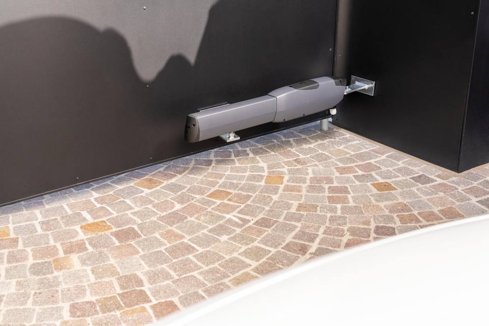 Motorreductor telescópico irreversible 24 V con codificar, Para puertas batientes con C Max. 200mm con hasta 3 m, Pesa hasta 400 kg, Color RAL7024-grayProyecto de solución de capacidad