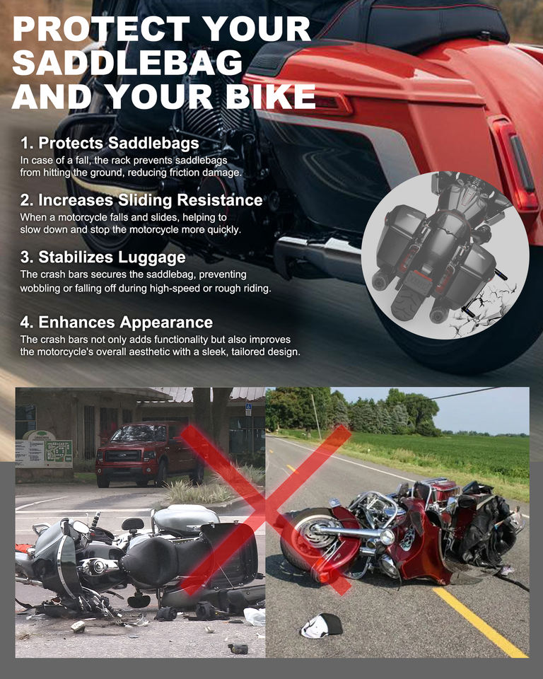 Palabra clave:Barra protectora de motor para motocicleta, compatible con Harley, ideal para carretera y protección contra caídas.