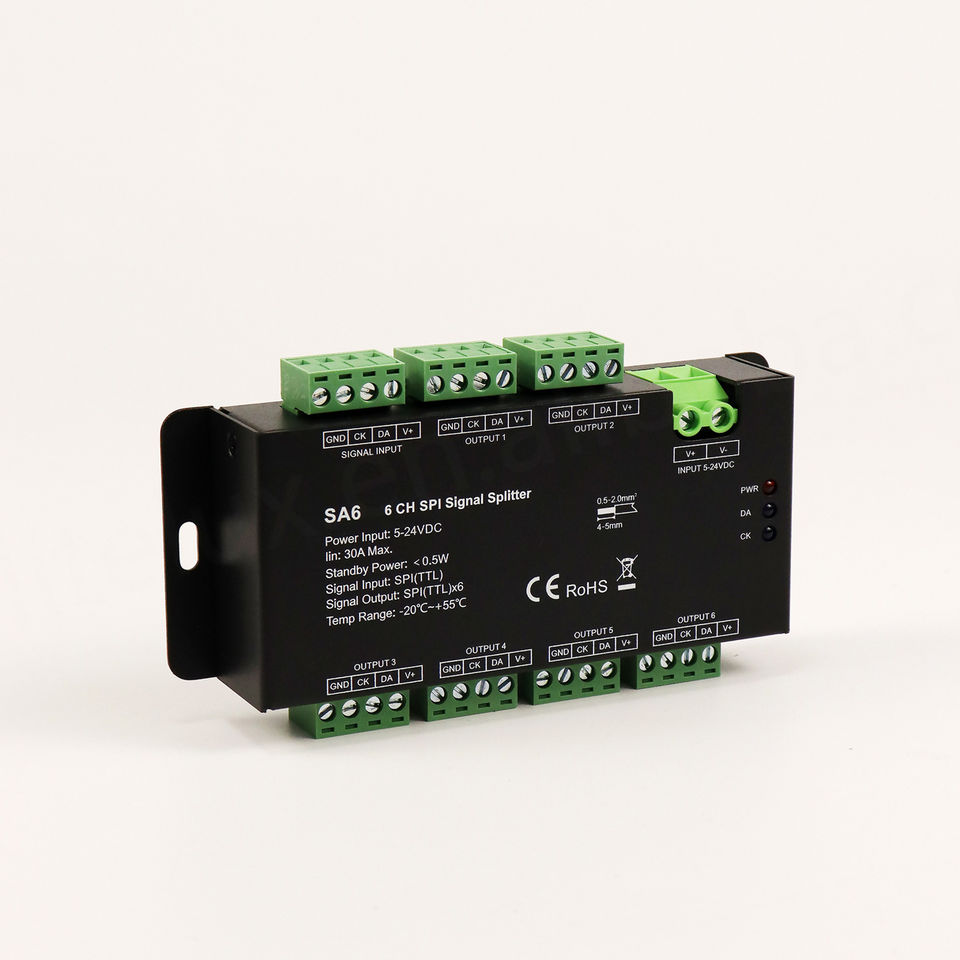 Divisor de Señal SPI SA6 de Alto Rendimiento con 1 Entrada y 6 Salidas para Control Sincrónico de Múltiples Tiras LED Digitales
