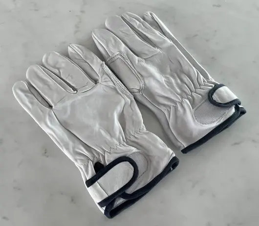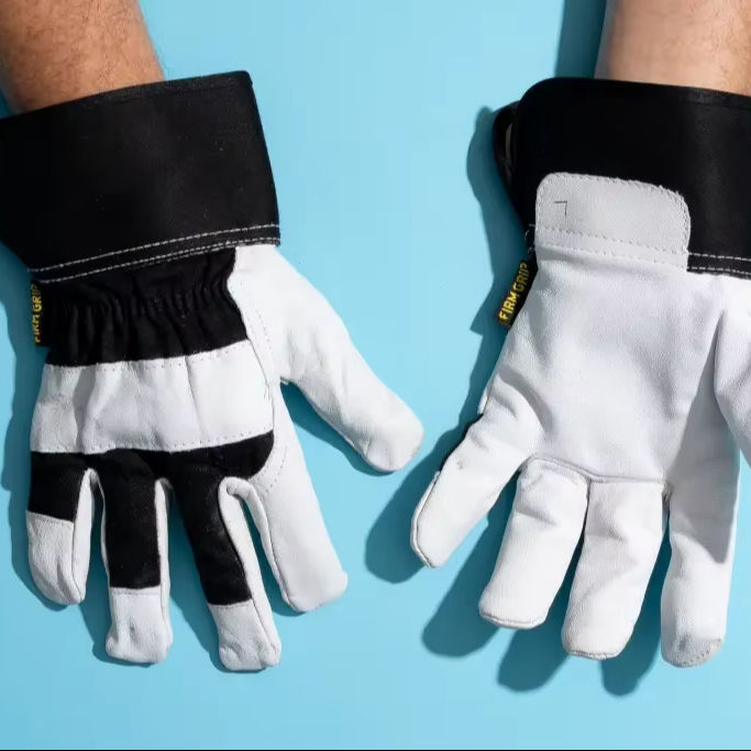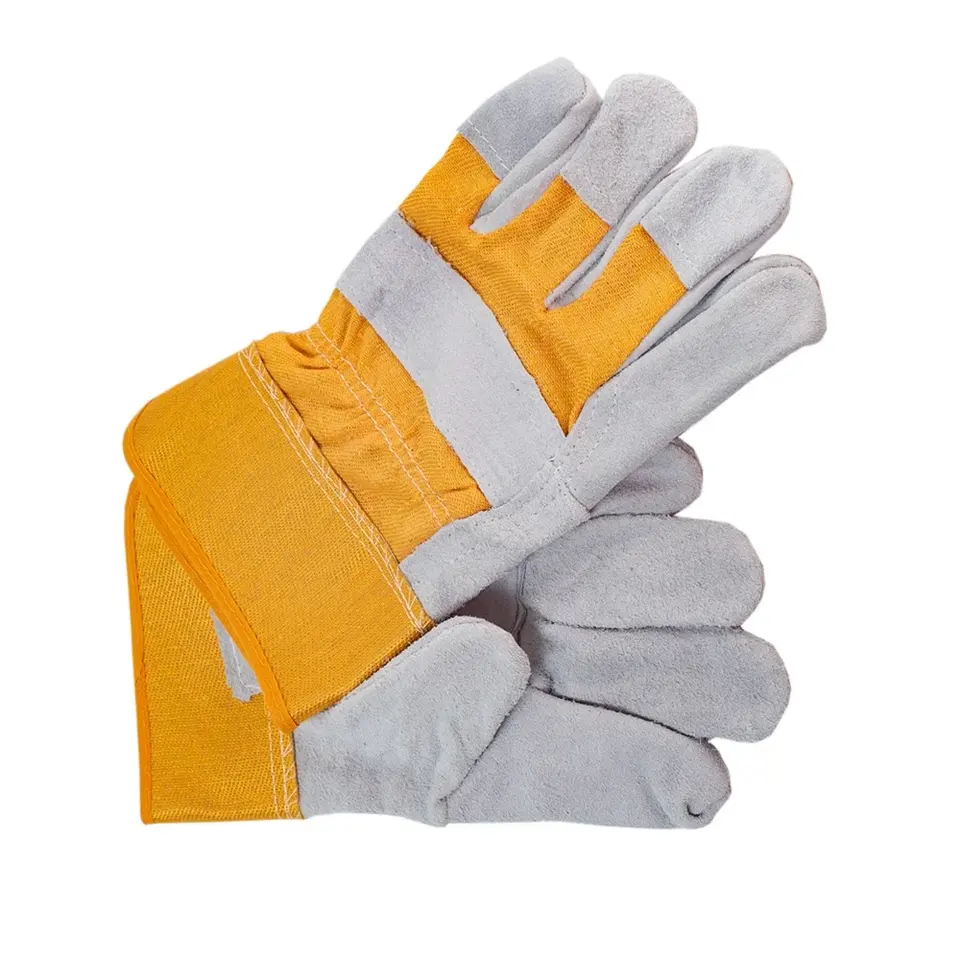 Guantes de trabajo de cuero dividido de alto rendimiento con espalda de lona y puño de seguridad de goma, diseñados para trabajadores de la industria