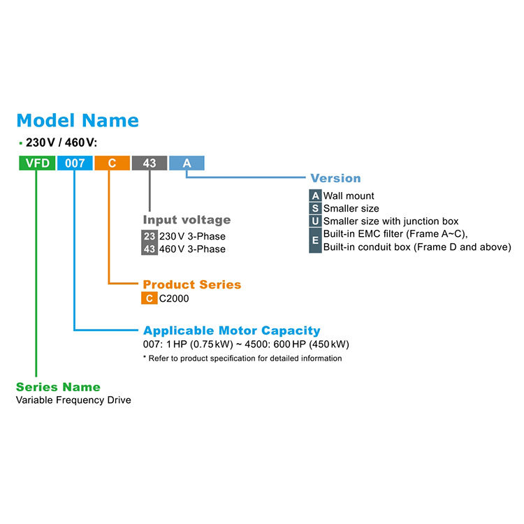 High Performance VFD Three Phase 380V 5.5kW VFD055C4EA-21 C2000 Plus