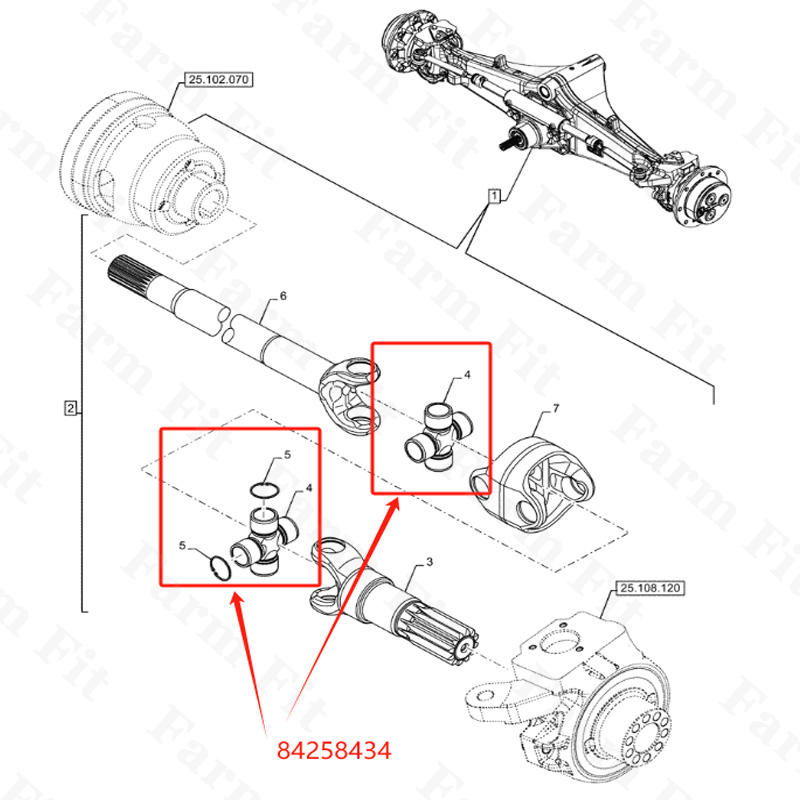 Precio al por mayor de alto rendimiento 84258434 para New Holland B100BTC, B100C, B100CLR, B100CTC, B90B, B90BLR Junta cruzada