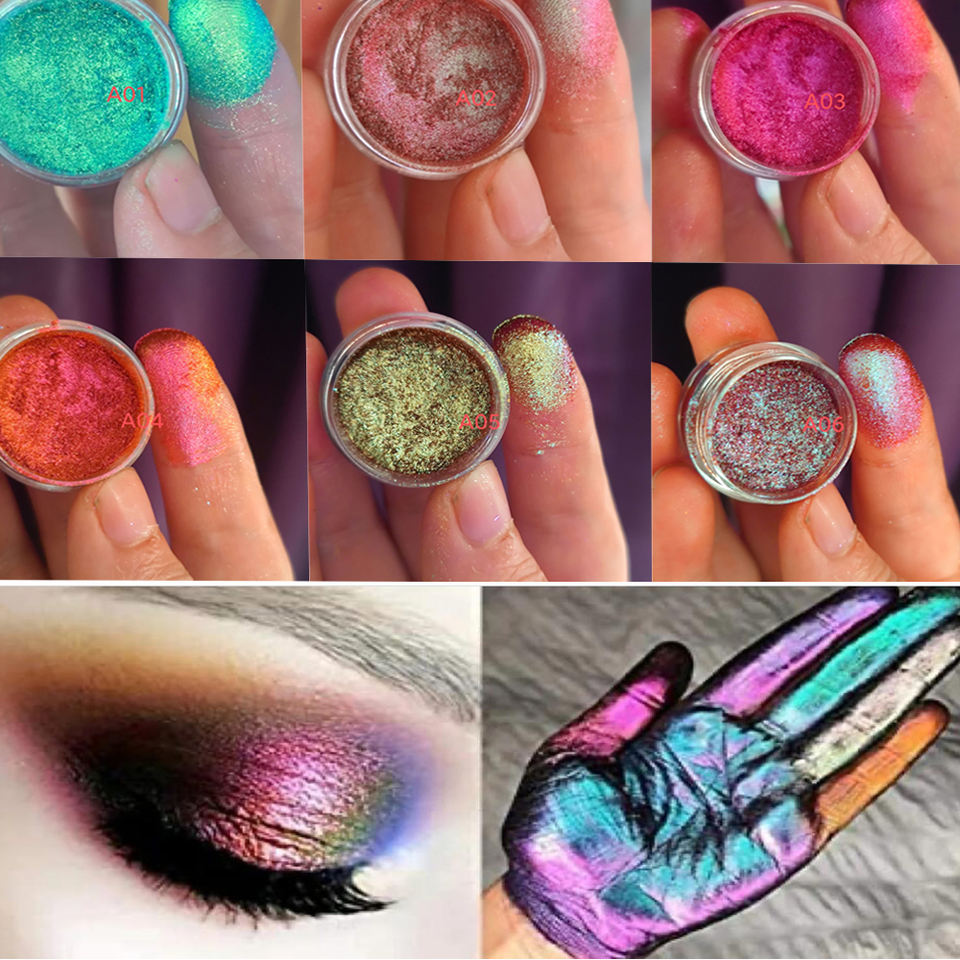 Polvo de sombra de ojos MultiChrome de alta pigmentación Pigmentos cambiantes MultiChrome Sombra de ojos Camaleón Duochrome Polvo de cromo infinito