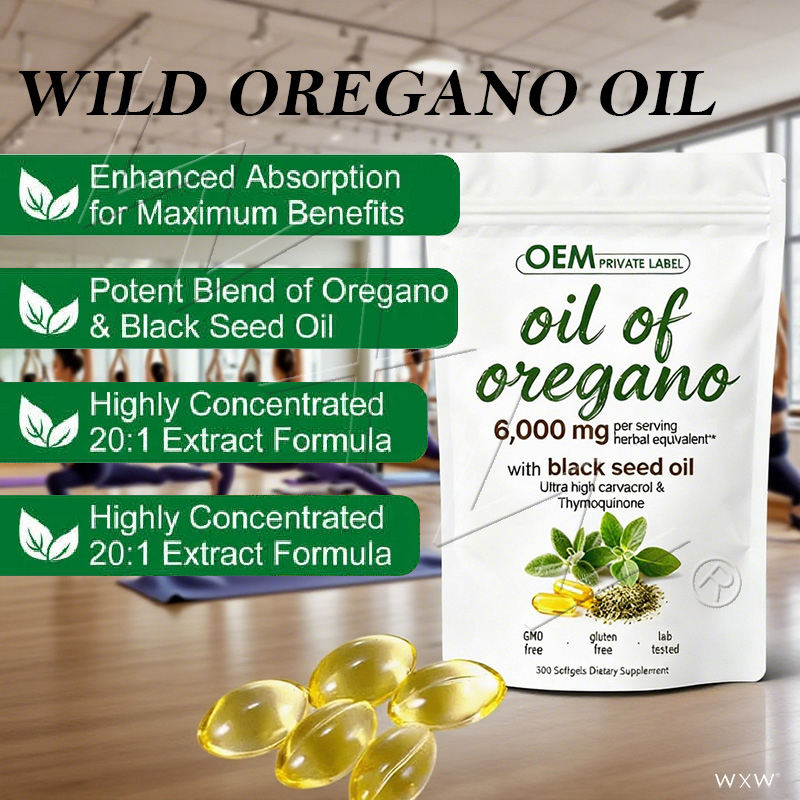 Cápsulas Blandas de Aceite de Orégano y Aceite de Semilla Negra de Alta Potencia para la Salud Intestinal y Respiratoria